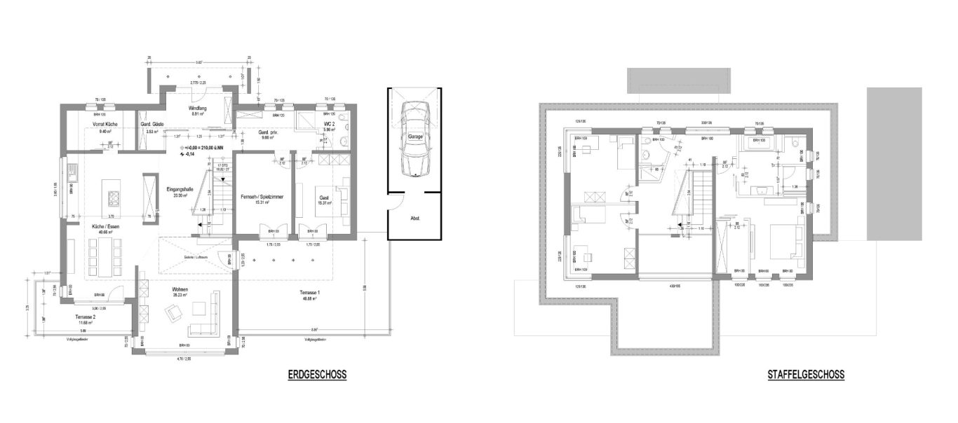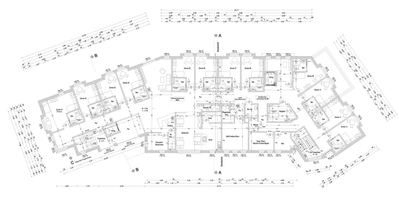 Erstellung unterschriftsreifer Bauantragsunterlagen (Grundrisse, Schnitte, Ansichten, Formulare und Berechnungen) nach Planungsvorgaben des Auftraggebers.